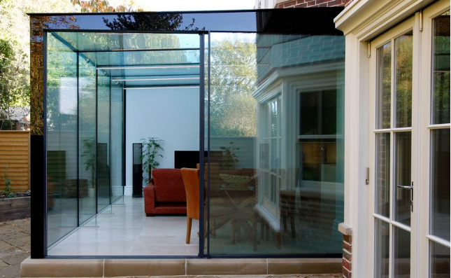 - Складные конструкции состоят из нескольких створок, соединенных шарнирами, складываются и сдвигаются в сторону, собираясь в компактный «пакет». Они идеальны для очень широких проемов (от 4-5 метров), которые необходимо открыть полностью более чем на 80%. Позволяют радикально преобразовать пространство, объединяя комнату и террасу в единую площадку. Это частый выбор для ресторанов, баров и резиденций с экстремально панорамным остеклением.